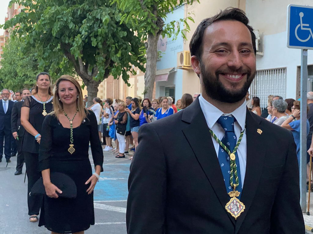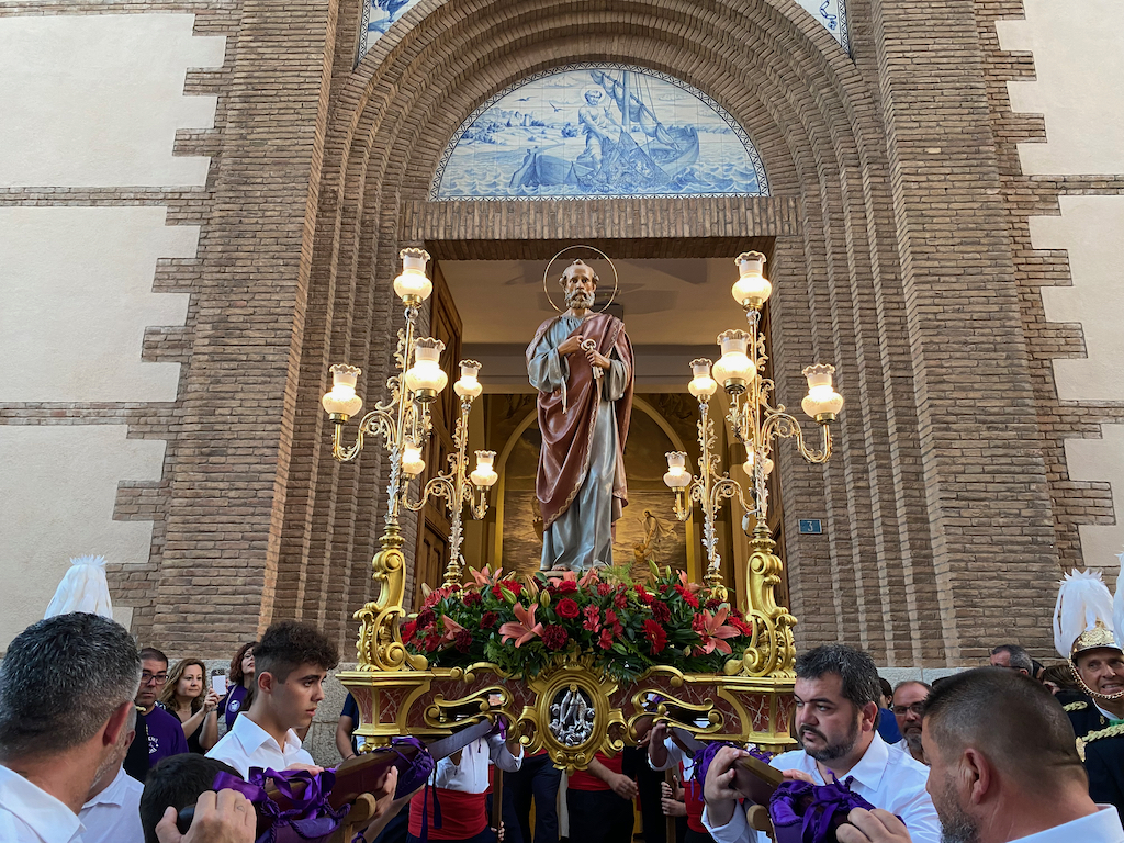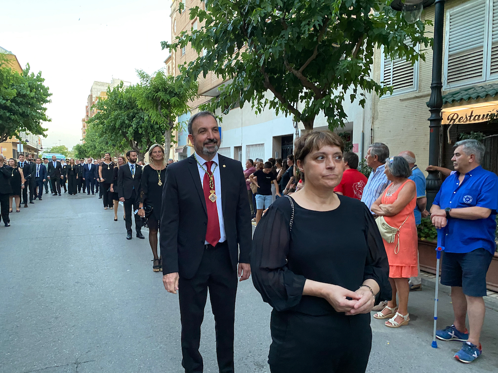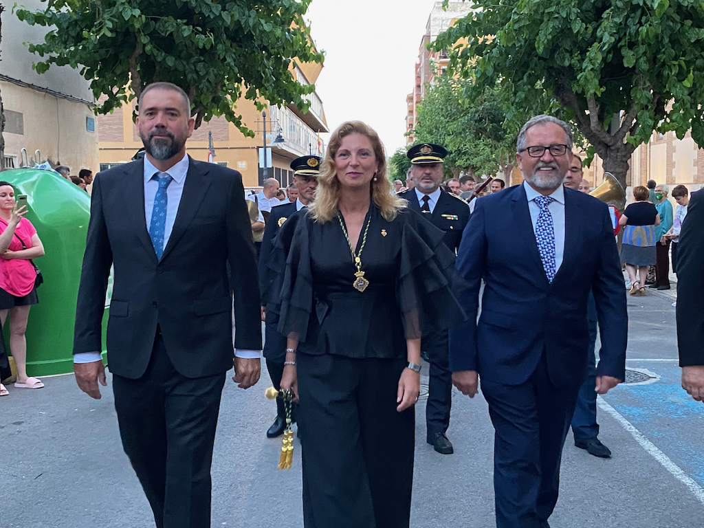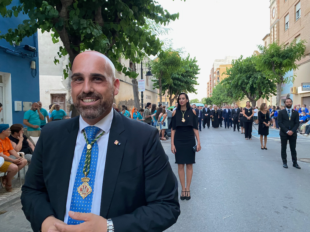 Después lo haría la imagen de Sant Pere, también con vivas y aplausos. En la puerta de la iglesia se compuso el resto de la procesión. Primero las damas del Grau con la banda del Distrito Marítimo.