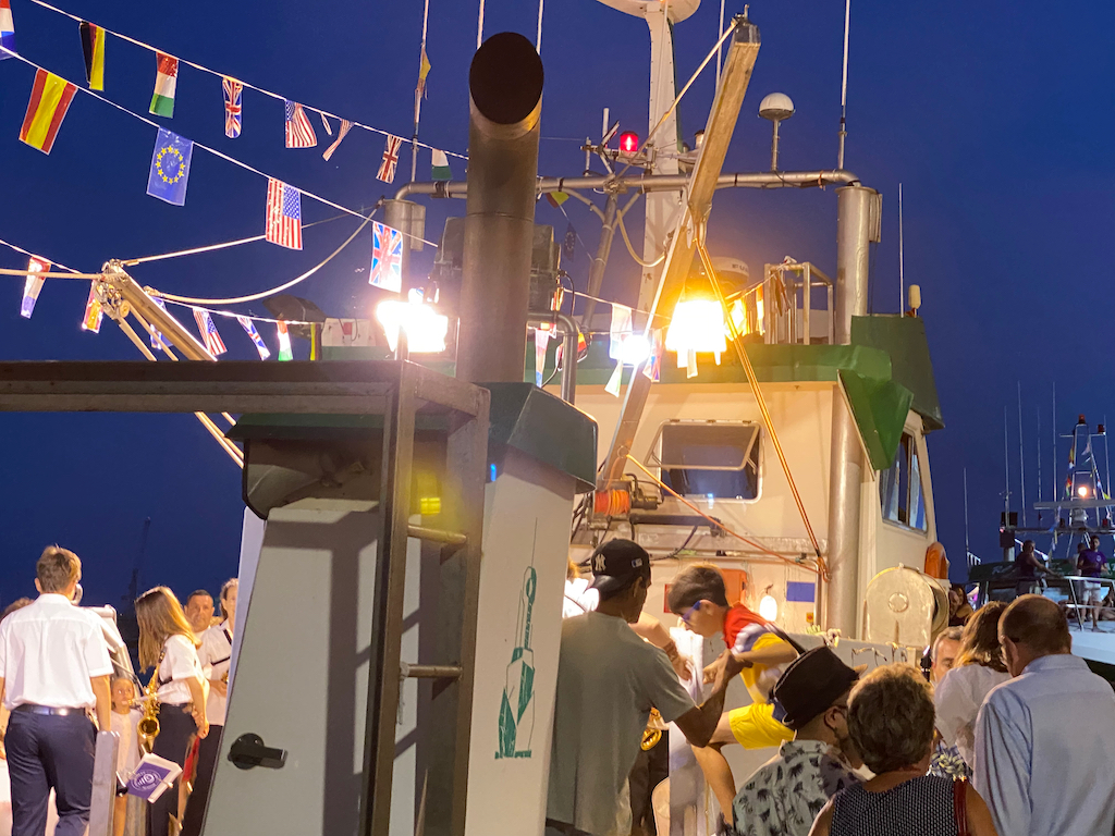 Los barcos pesqueros ya estaban preparados para acoger la procesión. En la primera nave se embarcó a la Virgen del Carmen. En la Segunda, a Sant Pere, y en la tercera subieron a bordo las autoridades: Corporación municipal, presidente de Diputación, Guardia Civil, Port Castelló, Capitanía Marítima.