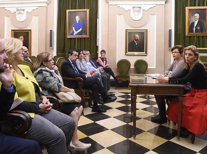 La alcaldesa de Castellón, Amparo Marco, junto a la concejala de Impulso de la Actividad Económica, Patricia Puerta, se han reunido hoy con los empresarios hoteleros de la ciudad en una reunión que ha servido para escuchar las demandas del colectivo, conocer sus inquietudes y propuestas para sumarse al objetivo del Gobierno municipal de convertir a Castellón en un referente turístico. Los empresarios han trasladado a la alcaldesa la petición de que haya una apuesta efectiva por el turismo de congresos en la ciudad y que se siga apostando por los eventos deportivos como dinamizador turístico.
