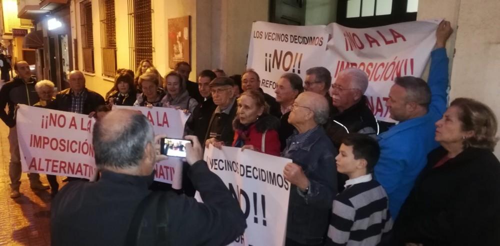 Los residentes reciben con protestas a técnicos y concejales delante de la Cámara donde estaba convocada la reunión
