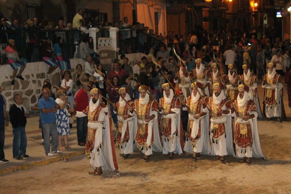 Los moros y cristianos han tomado esta noche las calles del núcleo histórico de Almenara al celebrarse un año más la esperada entrada protagonizada por la filà Hassam Hardà de Alboraia y la Asociación Musical Santa Cecilia de Almenara , que han recorrido el trayecto entre el jardín de la calle Mayor hasta la plaza del Molí, llegando al recinto de cadafals bajo los aplausos del público asistente en una celebración que ya se ha consolidado dentro de las celebraciones festivas de Almenara y que es esperada por los vecinos. La música, los trajes y la participación de los quintos fue uno de los atractivos de la noche junto a la novedad de la "huevada" que consistirá esta madrugada en el reparto de 1.500 huevos fritos y vino a cargo de los Quintos de los 25 años.