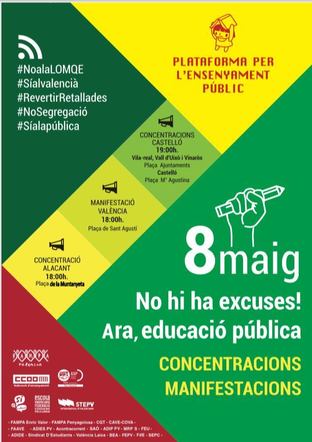 ERPV mostra el seu suport a la vaga programada per al 8 de maig contra la segregació de sexes, les retalladas i la Lomqe