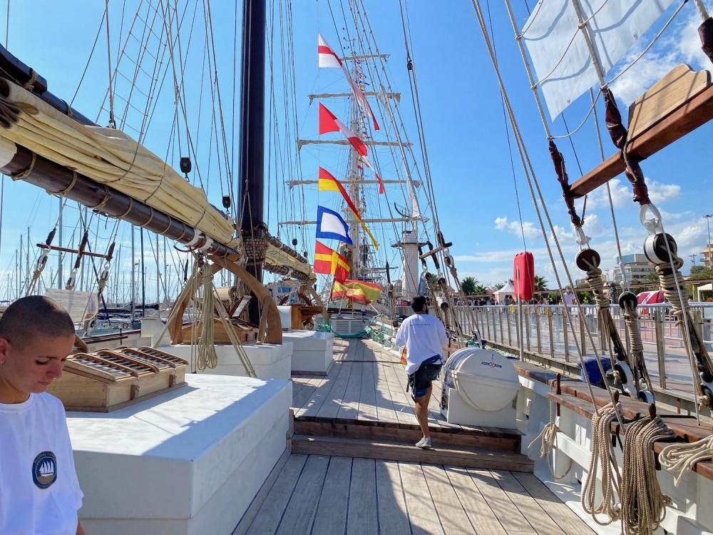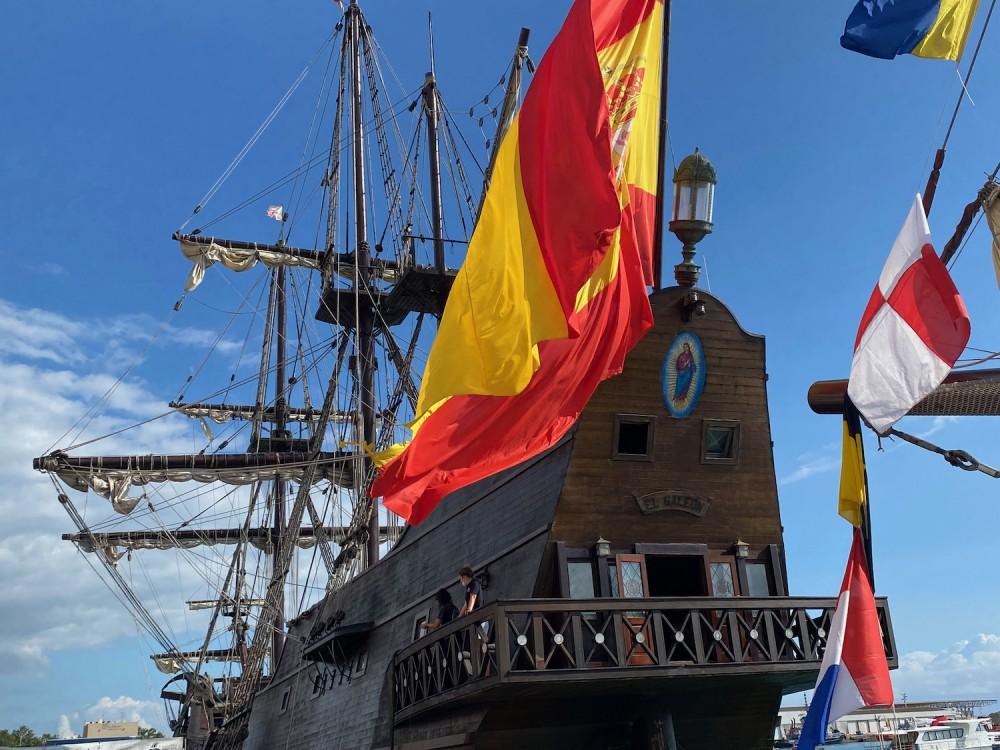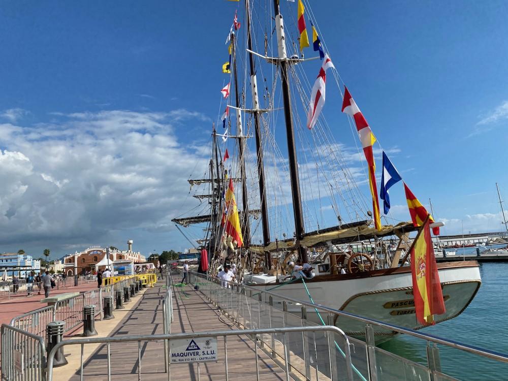 El muelle de costa de PortCastelló presentaba ya a primera hora tres de los navíos históricos: a Nao Victoria, el Cervantes Saavedra y El Galeón, a los que se ha sumado, a media mañana, el Pascual Flores de Torrevieja, cuya llegada se recoge en el video de Castellón Información con música del grup de música de Benicàssim, Canya de Sucre.