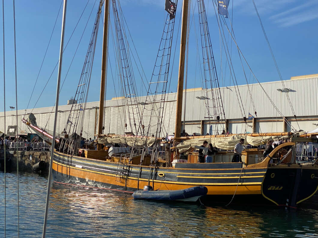 El primero es el Äran, que tiene su base en Palamós. Un velero de madera construido hace cien años, en 1903 en Suecia, que acabó en España para poder surcar el Mediterráneo… Pero acabó de aquella manera. Rescatado por los navegantes que ahora lo llevan, fue restaurado de forma artesanal, prácticamente a mano y de forma personal. Si el visitante accede a bordo, pregunte por la ‘masa de cemento’ que se encuentra en su base. Es el lastre que mantiene al velero ‘adrizado’, (sirve de contrapeso para mantener su estabilidad en el mar). Los antiguos tripulantes lo marcaron con sus propias manos cuando realizaron una restauración a finales de los años 70. La historia de aquella restauración pone la piel de gallina.