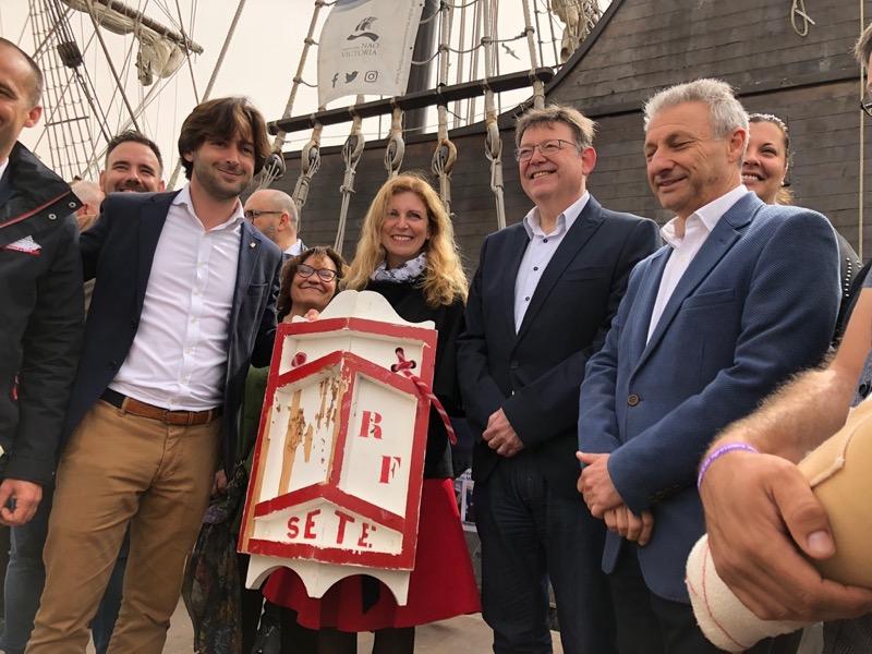 Los representantes de la ciudad francesa de Sète, le han entregado a la alcaldesa de Castellón un 'escudo' de batalla de las 'Justas' de Sète.