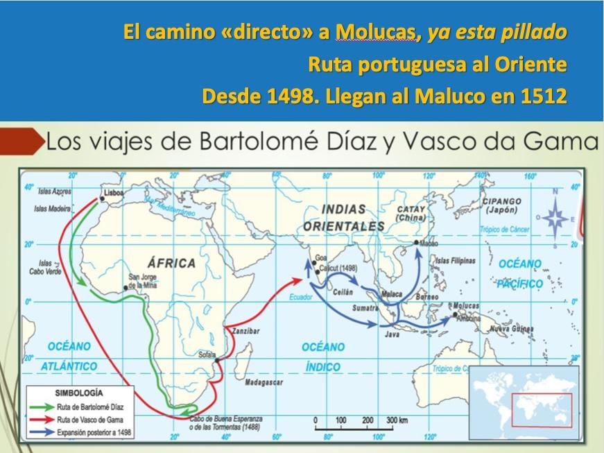 Solo había dos caminos posibles: bordear África para llegar al índico y a las Molucas, con la técnica del costeo, que fue lo que hicieron los portugueses. O atravesar el océano Atlántico de este a oeste para llegar al otro lado del mundo donde se encontraba Asia, que es lo que hicieron los españoles.
