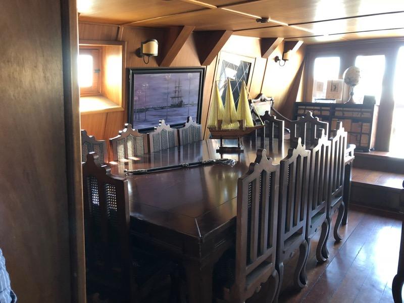 En la expedición original la tripulación y parte de los oficiales iban en cubierta, donde hacían toda la vida, tanto de día como de noche, hiciera buen o mal tiempo. En el castillo de popa se encuentra el camarote del capitán, ahora también sala de aparejos de navegación. Si se contemplan las medidas de la cama, se puede comprender que la altura media de la época era mucho más corta que la actual. Y también puede entenderse el relato de uno de los cronistas de la Expedición, Pigafetta, cuando afirmaba en su diario que se encontraron con ‘gigantes’ en la Patagonia. Hombres que sorprenderían a los navegantes por su altura y su constitución para la época.