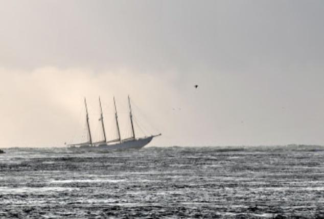 La arribada al muelle de Costa de Castellón está prevista sobre las 18:00 horas. Recibidos con salvas de cañón, aunque la meteorología y el estado del mar son enemigos de los horarios.
