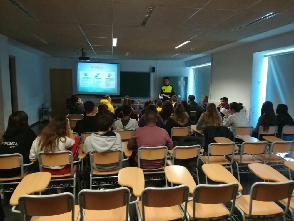 Durante el día 19 se realizaron a los escolares de 2º de ESO, las jornadas previstas en el primera parte del curso escolar, relacionadas con el consumo de sustancias (alcohol y drogas) consistentes en la exposición de videos y diapositivas acompañadas de una explicación de cada una de estas, informando sobre los riesgos no solo en la conducción de cualquier vehículo, sino a lo que están expuestos por el consumo de alcohol, estupefacientes o drogas de diseño, haciendo especial atención además de aquellas drogas que se utilizan para la total desinhibición de las personas y los problemas que pudieran derivarse posteriormente en conductas delictivas relacionadas sobre todo al colectivo de mujeres y vinculantes a abusos o agresiones sexuales.