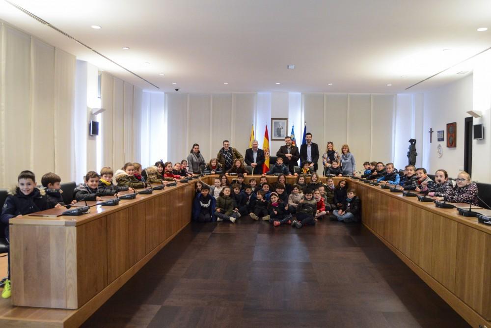 També ha tingut lloc aquest matí una recepció en dos torns diferents a alumnes del col·legi Escultor Ortells. En primer lloc han assistit 50 escolars de primer de primària amb dos professors. El segon grup comptava amb 50 escolars de segon de primària i dos docents. Els tinents d'alcalde Xavier Ochando, Javier Serralvo, Josep Pasqual Sancho, i el regidor Álvaro Escorihuela, han estat els encarregats de rebre els alumnes a la seua arribada a la sala de plens, on no només han pogut conéixer més dades sobre la història de la ciutat i sobre les dependències municipals, sinó també sobre el funcionament de la institució. Aquestes visites s'organitzen amb motiu de les festes fundacionals.