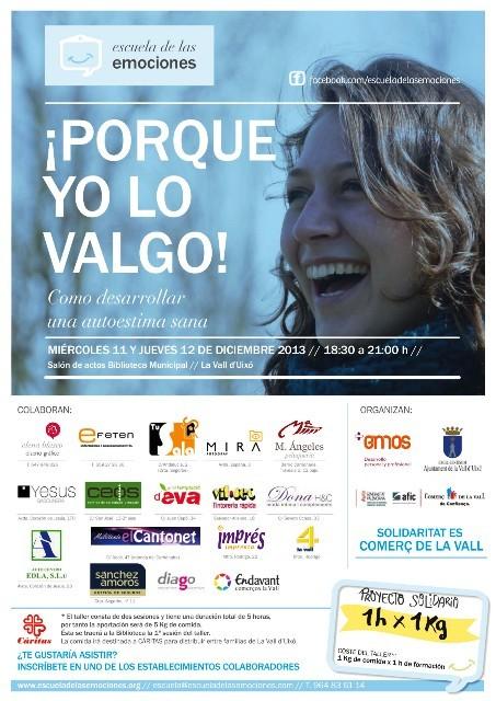 La Vall d’Uixó acoge esta semana una nueva charla de la ‘Escuela de las emociones’ que versará sobre la autoestima. Jonathan Secanella, gerente de la empresa EMOS, que organiza estas actividades para las empresas de la ciudad ha explicado que la charla de esta semana es “un tema apasionante, pues la autoestima no sólo es la base de la gestión de las emociones, sino que es el pilar fundamental de la fortaleza interior y la felicidad”.