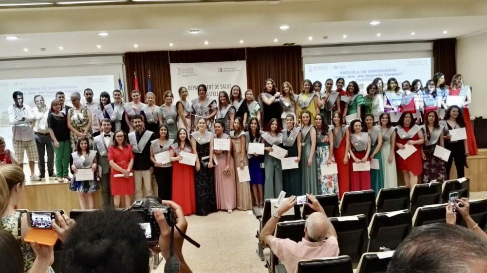 El acto, que ha servido para clausurar el curso académico 2018-2019, ha sido presidido por la directora de la Escuela de Enfermería, Aurora Esteve, quién ha estado acompañada por la directora de Enfermería del DSCS, Pilar Fernández, la directora de estudios de la Escuela, Luz Mª Roca y el gerente del Departament de Salut de Castelló, Miguel Alcalde.