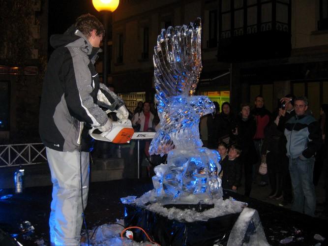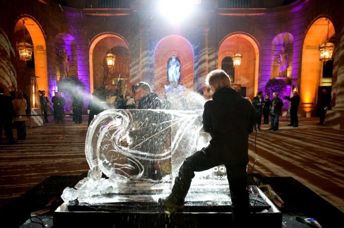 La construcción de esculturas de hielo es uno de los actos más atractivos para los visitantes