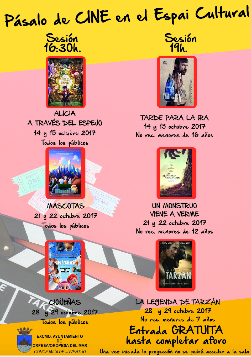la Concejalía de Juventud de Oropesa del Mar gracias a la que, hasta finales de octubre, los vecinos/as tendrán la oportunidad de disfrutar de manera gratuita de la proyección de diversas películas, tanto para el público familiar como para el público adulto.
