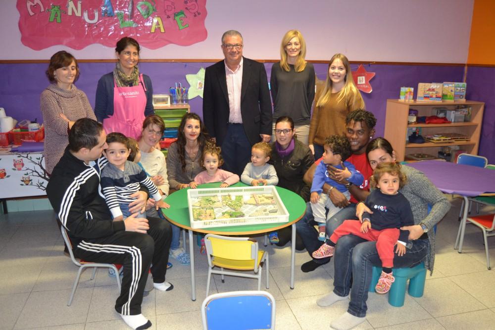 El alcalde de la localidad, Rafael Albert, ha acudido hoy al aula junto a la concejala de Educación, Sonia Bellés, para interesarse por el desarrollo de las actividades. Las maestras de la ludoteca han programado para Espai Familiar dos ejercicios distintos por edades. Para los niños de dos años se ha organizado un taller de cerámica en el que participan padres, madres e hijos, que consistía en construir, pintar y decorar una pequeña casa. Los más pequeños, de ocho a 18 meses, han plasmado su mano en un molde de barro que se llevan los padres como recuerdo.