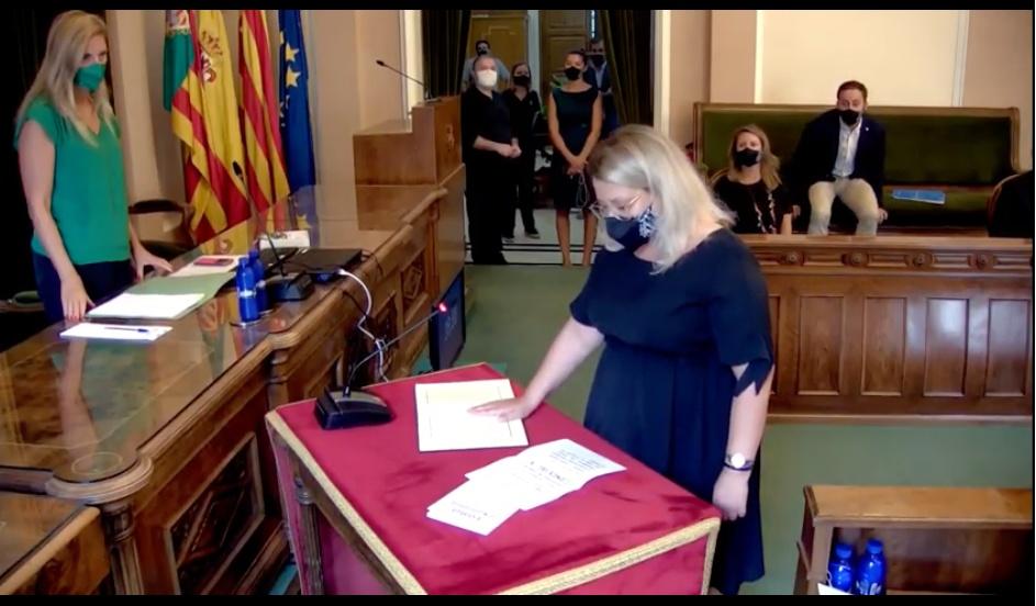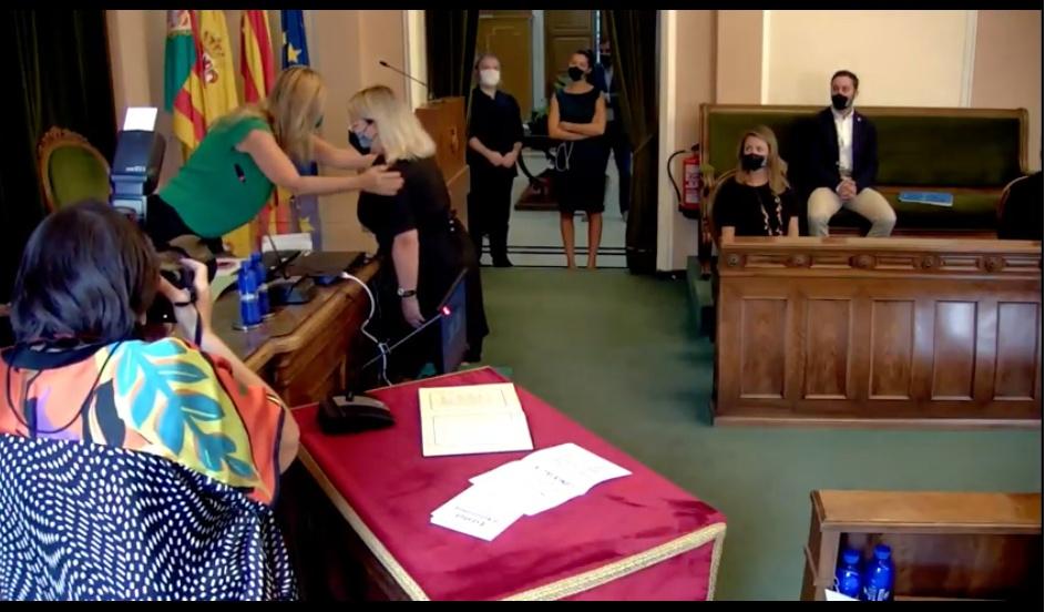 Pleno presencial para los concejales, que no para el público y la prensa, con la toma de posesión de la nueva concejal socialista, Mónica Barabás, y el aplauso de toda la Corporación a la funcionaria Mª Dolores Fernández que se jubila tras 37 años de trabajo en la entidad
