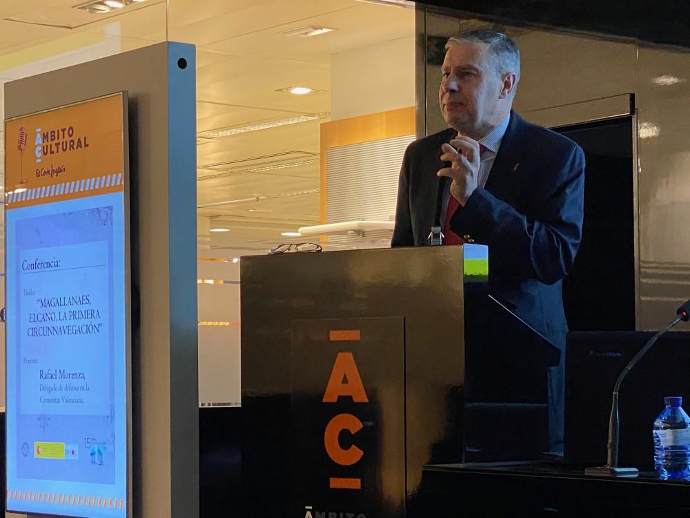 La Exposición de la vuelta al mundo de Magallanes y Elcano, de El Corte Inglés, se clausuraba ayer con una conferencia impartida por el delegado de Defensa de la Comunitat Valenciana, Fafael Morenza, que también forma parte de la Fundación del V Centenario de aquella expedición.