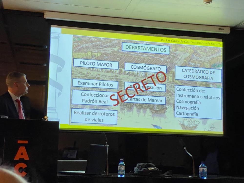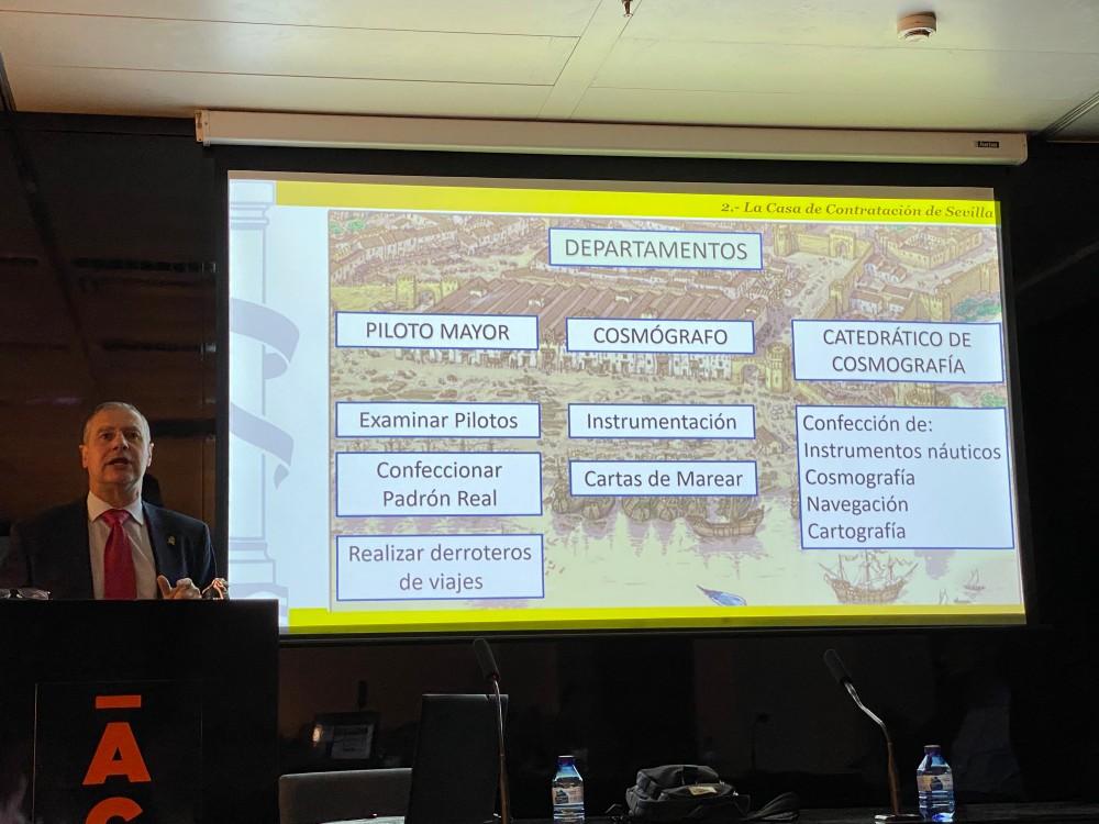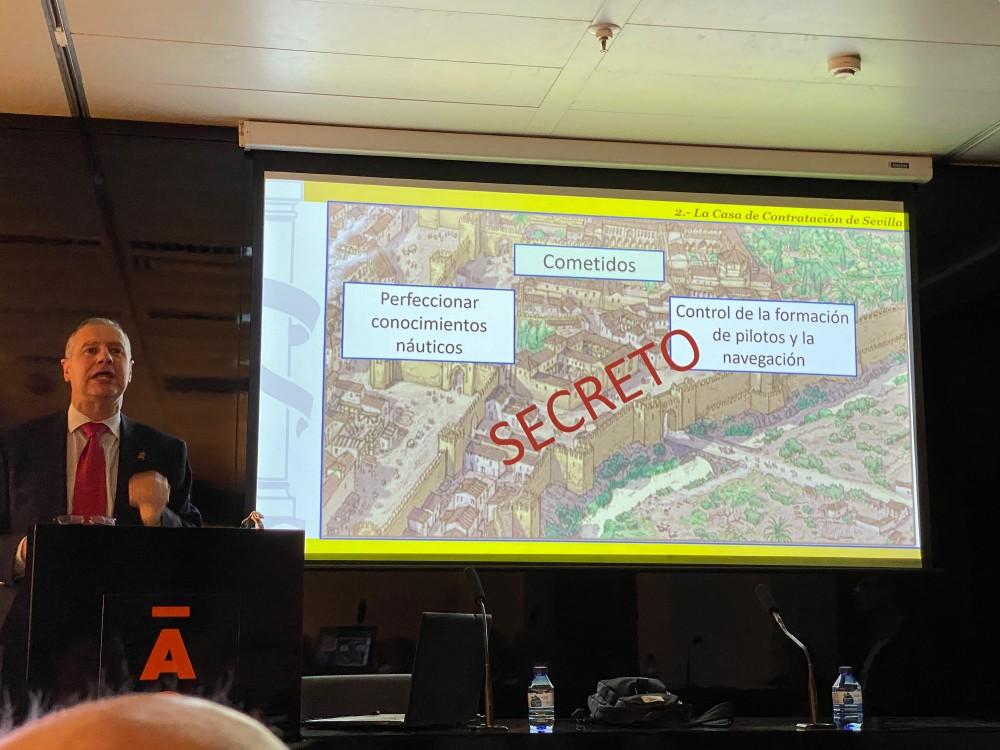 Morenza ha resaltado la importancia de la Casa de Contratación de Indias, en Sevilla. No se trataba solo de una entidad comercial sin más, sino de un centro logístico que, bajo el más absoluto secretismo, estudiaba, analizaba toda la cultura recopilada por la Escuela de Traductores de Toledo, añadía nuevos conocimientos y desarrollaba estrategias, instrumental náutico, elaboraba los mapas y documentaba cada una de las expediciones que se realizaban.