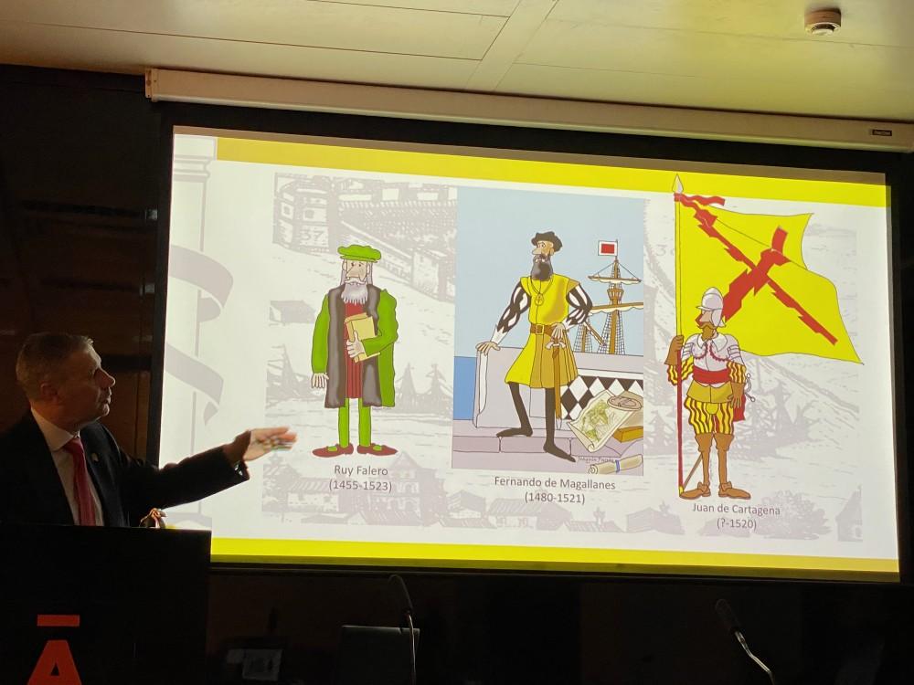 Datos que han llamado la atención en esta conferencia, han sido las referencias a Magallanes, nacido en Portugal pero nacionalizado español.