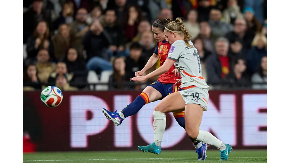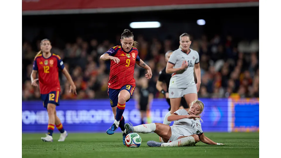 Las de Sonia Bermúdez, muy serias y bien plantadas en el terreno de juego, se movían dominando la pelota y el juego. De nuevo Laia, incisiva, remató de primeras al lateral un centro de Vicky desde la derecha. No paraba el acoso de España, con Ona Batlle animándose al ataque con un potente y seco remate con mucho peligro.