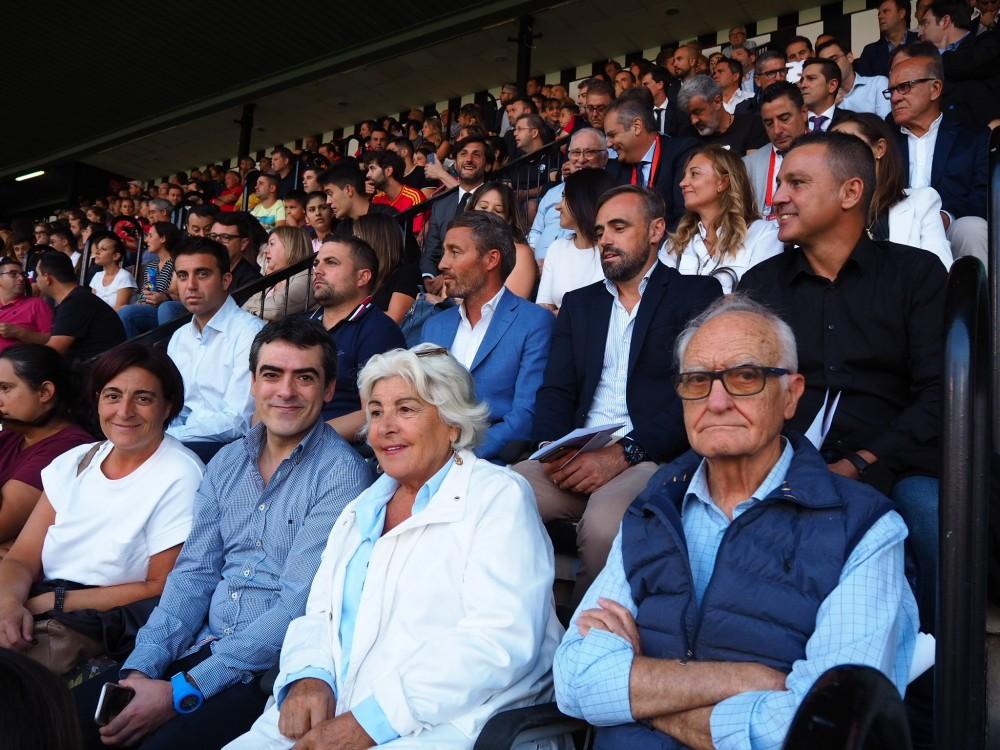AUTORIDADES Y CARAS CONOCIDAS. La diputada de deportes, Tani Baños estuvo en el palco acompañada por el presidente del Castellón, Vicente Montesinos. Además, el concejal de deportes Omar Braina y el edil Rafa Simó también estuvieron en segunda fila del palco. Además, muchas carras conocidas como el exportero Emilio Isierte, los extécnicos José Luis Oltra, Sergi Escobar y David Gutiérez. El exentrenador del filial albinegro Ferrán Girner. Óscar Cano, entrenador del Castellón, así como Javi Calleja, primer técnico del Villarreal. Otro entrenador cesado en pretemporada en el Almería, Óscar Fernández. Casi la plantilla al completo del Castellón, y varios futbolistas tanto del Villarreal B como del C.