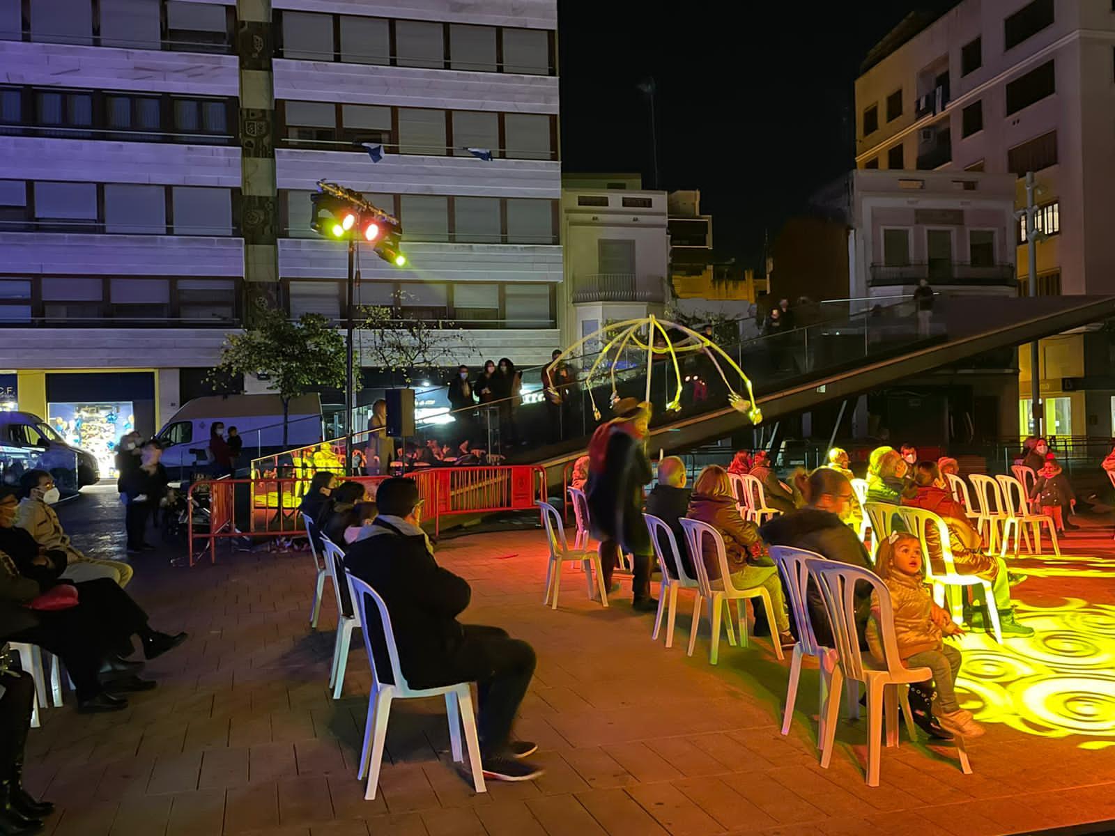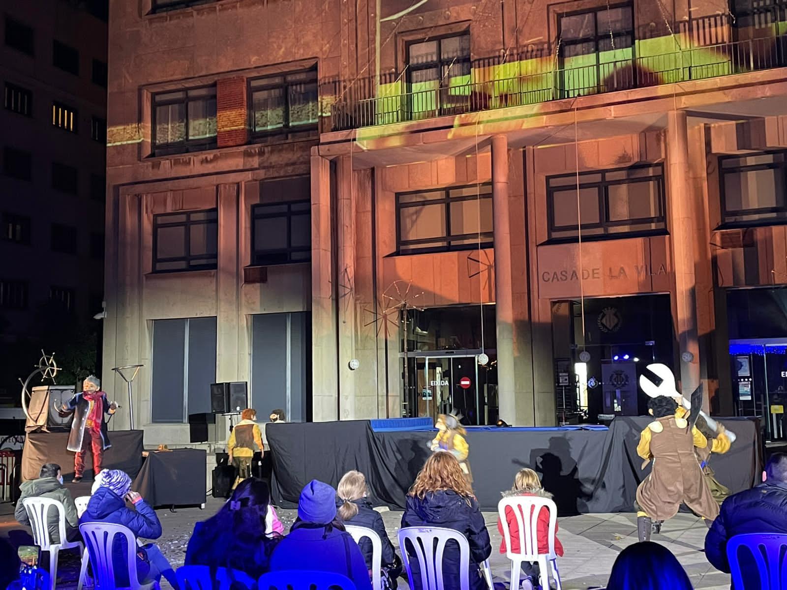 Espectacular ‘Encesa’ de Nadal amb mesures de seguretat anti-Covid a la plaça Major de Vila-real.El públic assistent ha pogutgaudir de l'acte amb cadires que estaven separades respectant la distància de seguretat. L’espectacle, a càrrec de la companyia local La Fam,ha obert la programació de la Fira de Nadal, amb més de 50 activitats fins al 4 de gener.
