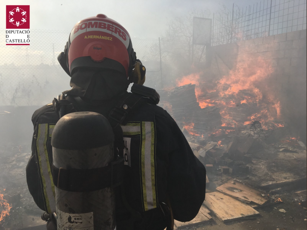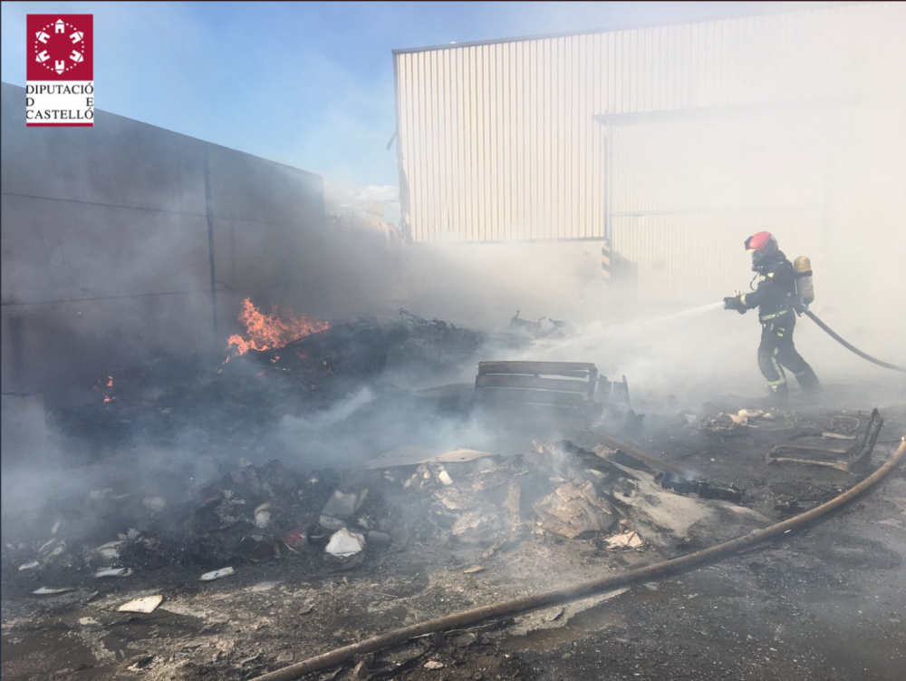 Alrededor de las 14.00 los servicios de información del CPBC han comunicado que dos dotaciones del parque de la Plana Baixa se habían movilizado a un incendio industrial en Almassora. Ha afectado a restos de maderas, palets y envases diversos en una zona de una almacén exterior de una antigua empresa dedicada a desguace, que actualmente está abandonada. En estos momento el fuego está controlado pero los bomberos siguen trabajando.