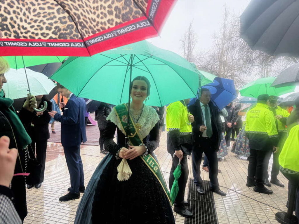La lluvia arreciaba, por eso, apenas daban las 12:00 horas, las reinas prendían la mecha que daba inicio a la mascletà.