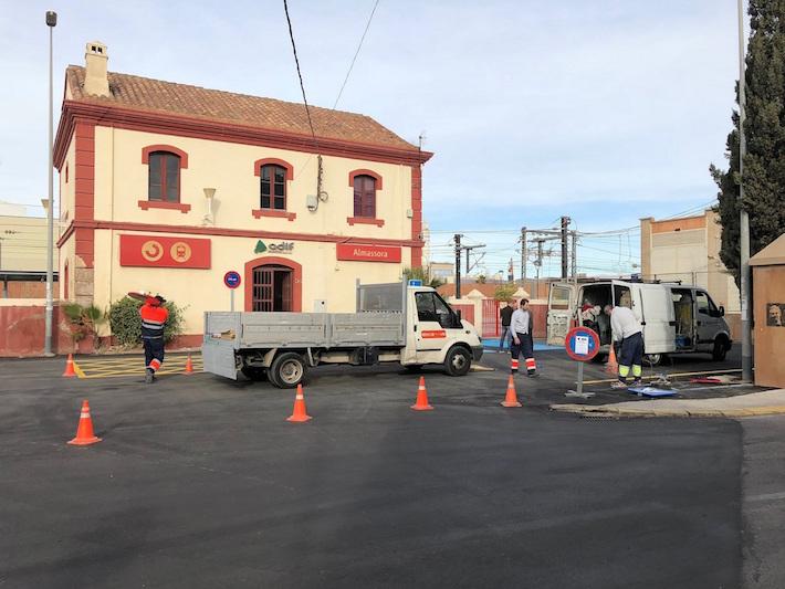 El departament de Serveis Públics d'Almassora ha iniciat aquest matí l'obertura de la zona d'aparcament a l'entorn de l'estació de tren. Responsables de Renfe, juntament amb el regidor de l'àrea, Joan Antoni Trenco, s'han desplaçat fins al baixador per a supervisar les obres que permetran habilitar un espai accessible i, en breu, més segur després d'una inversió propera als 30.000 euros.