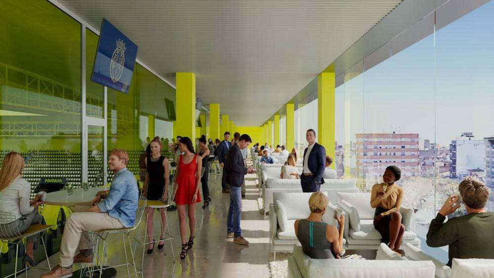 También se crearán nuevos espacios interiores: una sala polivalente en coronación del Fondo Sur con vistas al terreno de juego y a la plaza, la remodelación integral del Restaurante Entrelíneas y un nuevo espacio para el museo del Villarreal CF.