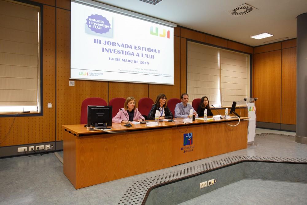 La Universitat Jaume I ha celebrat la III Jornada Estudia i Investiga a l'UJI, organitzada pel Vicerectorat d'Estudiants, Ocupació i Innovació Educativa i la Unitat de Suport Educatiu, per tal de generar un espai de trobada entre l'estudiantat i el professorat que participa en aquest programa, el qual permet a l'alumnat amb millors expedients col·laborar amb grups d'investigació des del primer curs d'universitat.