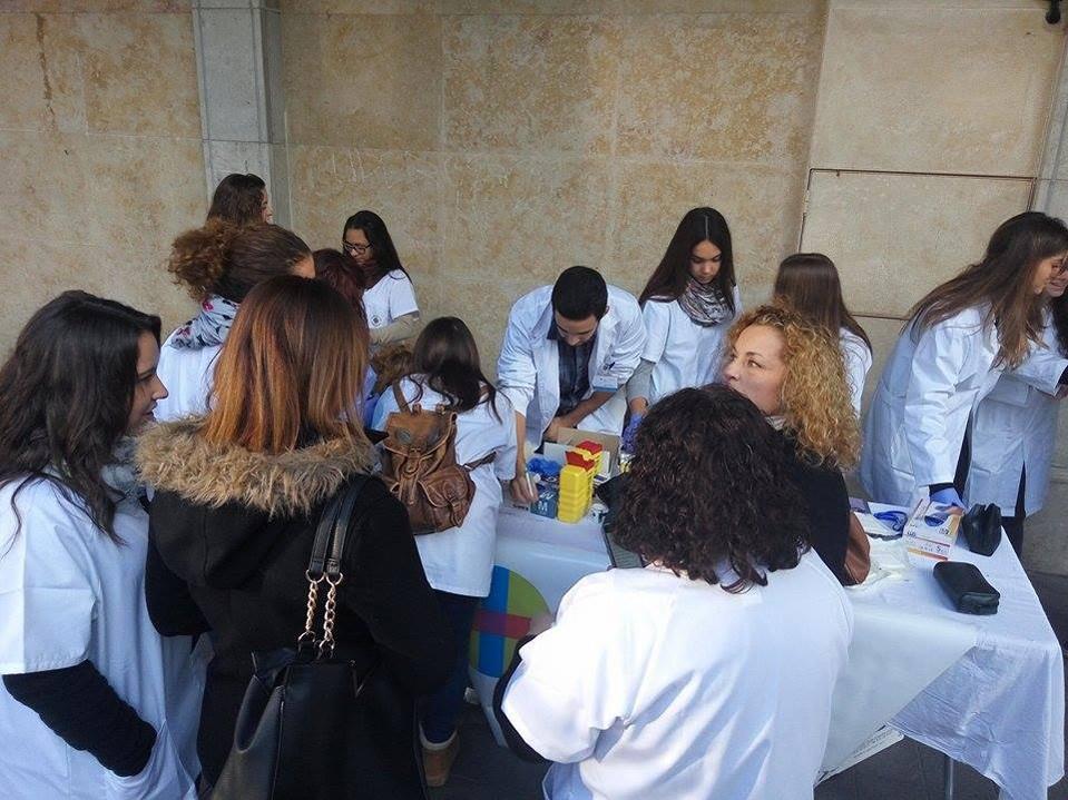Un centenar de estudiantes de Enfermería y Medicina de la Universidad CEU Cardenal Herrera de Castellón (junto a algunos alumnos del Ciclo Formativo de Grado Medio en Emergencias Sanitarias del Instituto Superior de Estudios Profesionales CEU de la Comunidad Valenciana) han instalado mesas de salud, por segundo año consecutivo durante estas fechas, en la Plaza de Santa Clara, en Castellón de La Plana.