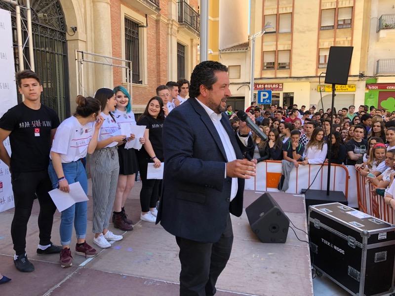 Fueron frases impactantes en una concentración que pretendía huir de los tonos oficiales para generar una mayor cercanía entre la institución y los estudiantes. Durante la presentación del evento intervenió el presidente de la Diputación, Javier Moliner. El presidente indicó: "Mirar hacia otro lado no es una opción , y con pequeños gestos, con una llamada, se puede salvar una vida". El público se mostró muy receptivo, gritó y aplaudió. Fue un momento fuerte con un ambiente de solidaridad.