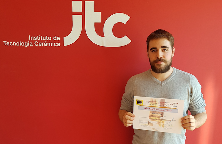 Eugeni Cañas Recacha, estudiant de doctorat de la Universitat Jaume I i becari de l'Institut Universitari de Tecnologia Ceràmica Agustín Escardino, ha rebut el primer premi del congrés '8èmes Rencontres Internationales sud la Projection Thermique', organitzat pel Centre Europeu de la Ceràmica de la Universitat de Llemotges (França). Eugeni Cañas ha obtingut aquesta distinció pel treball titulat 'Effect of feedstock and thermal spraying variables on the performance of solution precursor plasma sprayed bioactive glass coatings'. Els directors de la tesi de l'alumne premiat són el catedràtic d'Enginyeria Química, Enrique Sánchez, i la professora María José Orts.