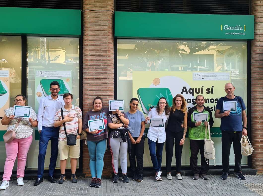 Se trata del primer taller desarrollado en la Comunidad Valenciana, y los participantes, usuarios de la Asociación Prominusválidos Psíquicos La Safor (ASMISAF), pudieron disfrutar de esta acción formativa impartida por los profesionales de Eurocaja Rural en la oficina de Gandía, encabezados por su directora, Verónica López Hernández.