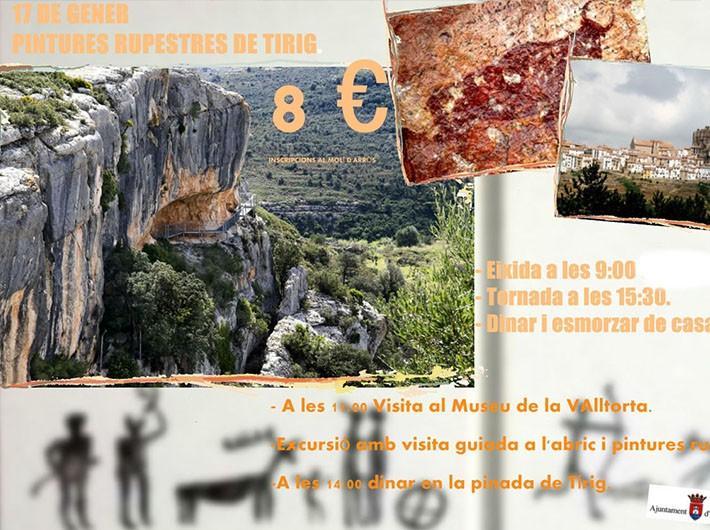 El programa de excursiones Almenara 'On Tour' organizado desde el Ayuntamiento de Almenara celebrará el próximo domingo su segunda excursión que se centrará en las pinturas rupestres y la zona de Tírig tras realizar ya una primera salida al municipio abandonado de Jinquer en la Serra d'Espadà. La previsión es que se repita el éxito de la primera cita del programa en cuanto a asistencia de vecinos.