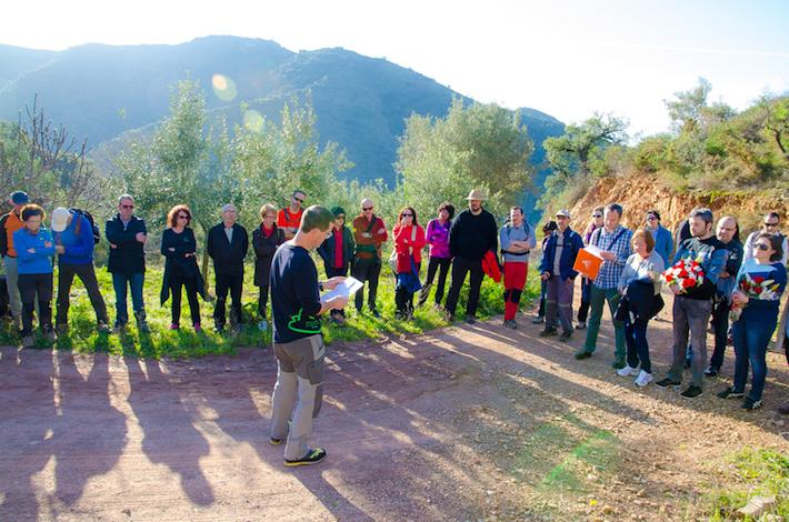 Prop d'una quarentena de socis (gairebé el CEB al complet) van acompanyar als familiars de Juanma fins al lloc exacte del trist esdeveniment. Una vegada allí es van dedicar unes emotives paraules, tant per part del president del Centre Excursionista de Borriana com de la família de Juanma. Seguidament es va disposar a la col·locació d'una petita placa en el seu record, amb una fotografia de la seva última participació amb el CEB, a Tirig, i la frase “en la cumbre nos encontraremos”. Després d'unes ofrenes florals i alguns petits detalls plens de simbolisme, els senderistes van treure els bastons per iniciar l'ascensió al pic Cullera. El CEB ha volgut agrair per la seua part a l'Ajuntament d'Almedíxer per la seua total disposició.