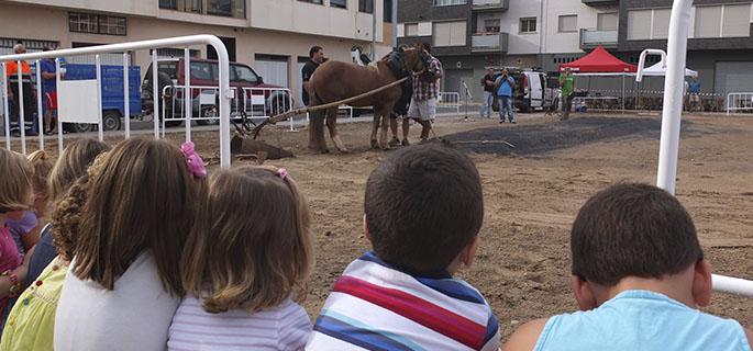 Desde primera hora de la mañana la programación de la Fira ha despertado la curiosidad de multitud de escolares que, en respuesta a la invitación realizada desde el Ayuntamiento, han acudido a la Exhibición de Labranza organizada especialmente para ellos. Varios cientos de niños y niñas de diferentes ciclos escolares y de la mayor parte de los colegios de la localidad, han tenido la oportunidad de conocer las diferentes técnicas de labranza con caballos, así como la utilidad de cada una de las herramientas que, antiguamente, se empleaban para preparar la tierra para el cultivo.