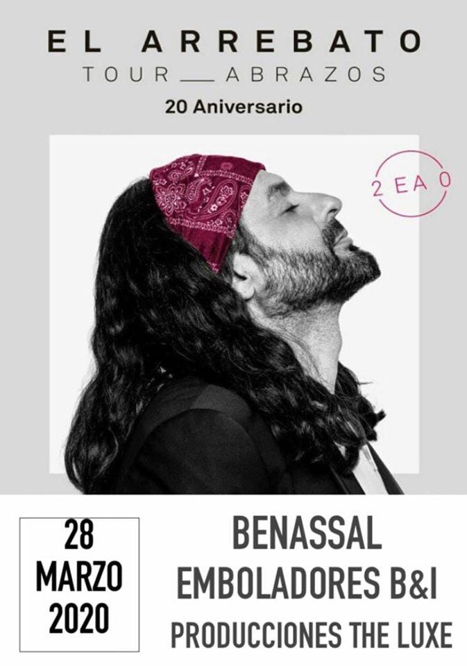 El pròxim 28 de març de 2020 el Tour Abrazos de El Arrebato arribarà a Benassal. El municipi viurà el 20 aniversari del cantautor sevillà autor de temes com 'Si la hubieras visto' o 'Búscate un hombre que te quiera'.