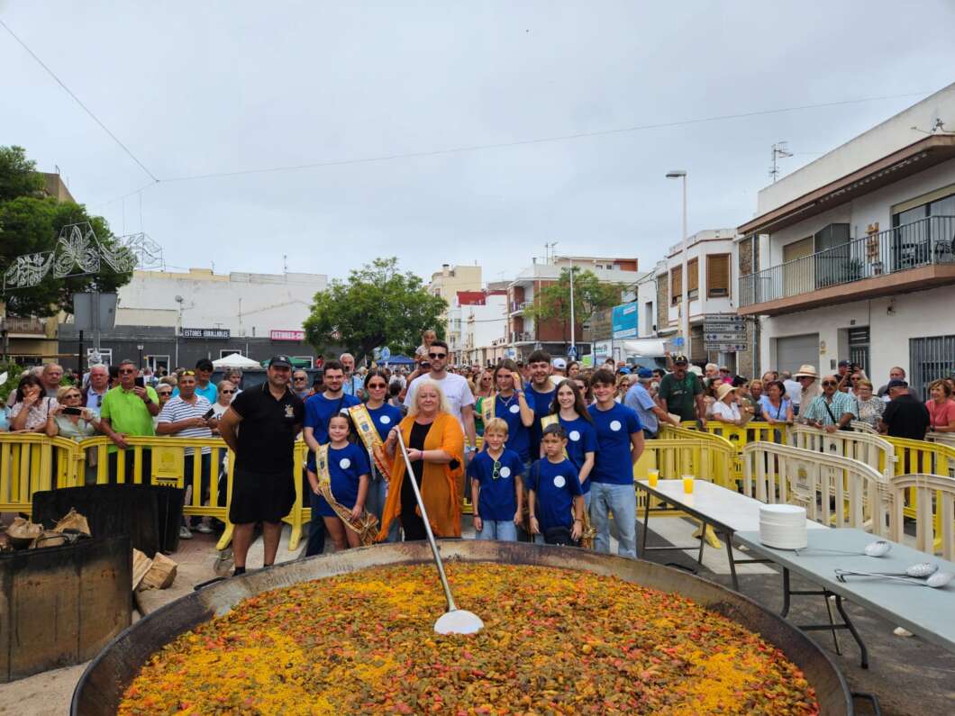El momento más emocionante del día llegó cuando se inició a la preparación de la paella monumental en la Plaza España. Cientos de habitantes y visitantes se congregaron para degustar este exquisito plato típico cocinado para 1500 personas. Poco después, la música volvió a ser protagonista en el territorio con la actuación de la Orquesta Top Zero, seguida por el carismático Showman del Serrucho y el DJ ADRI. Para concluir el día, se celebró la tradicional cena de sobaquillo.