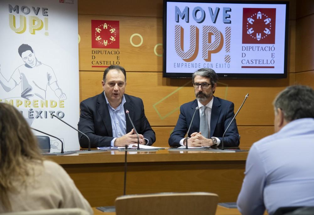 La Diputación de Castellón y el CEEI de Castellón han hecho realidad ya la implantación de un total de 72 empresas en 38 municipios de la provincia a través de las tres ediciones de su exitoso programa 'Move Up, emprende con éxito'. El diputado de Promoción Económica, Salvador Aguilella, junto al director del CEEI, Justo Vellón, han presentado hoy la cuarta edición de este innovador programa de apoyo a los emprendedores que acompañará a las 25 mejores ideas innovadoras de la provincia para convertirlas en negocios en los municipios de Castellón. Tal es la consolidación y la excelente reputación que se ha cosechado este programa entre el sector emprendedor y empresarial provincial que ya antes de la apertura de la inscripción han sido más de 50 los emprendedores que se han interesado por la misma.