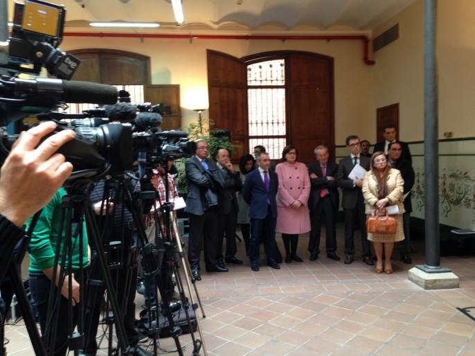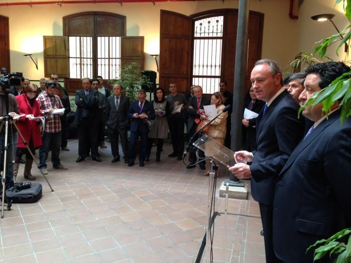 Tras la reunión, Fabra comparecía ante los medios de comunicación, arropado por el presidente de Aerocás, José ciscar, el presidente de la Diputación, Javier Moliner y el alcalde de la capital de la Plana, Alfonso Bataller.