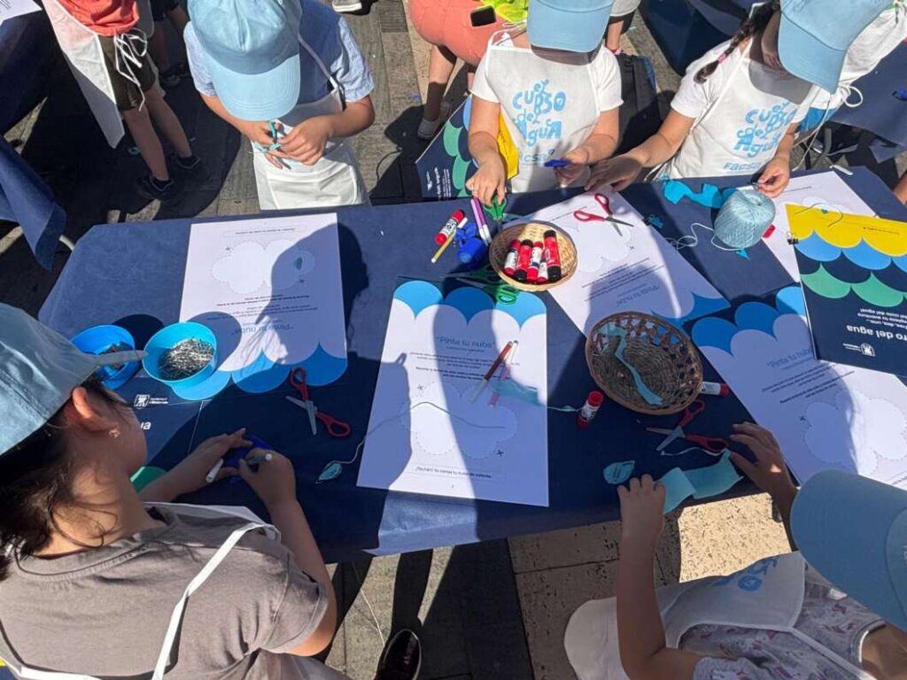 La actividad con el lema ‘Cuidem la teua aigua’ ha acercado a través de talleres, juegos y experimentos interactivos la cultura del agua a los escolares. Los participantes han podido conocer mejor las distintas fases del ciclo natural del agua, como es la evaporación, la formación de nubes o la lluvia-, así como el ciclo urbano, que se ha trabajado tanto en el taller de ‘El curso del agua’ como en el ‘Juego de la gota’.