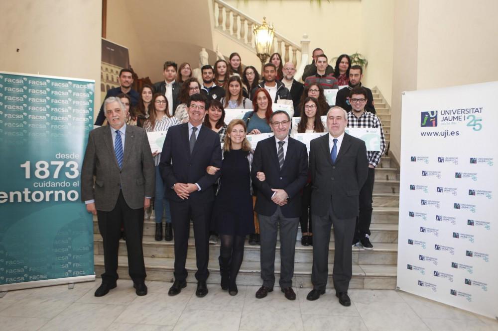 El Ayuntamiento de Castellón de la Plana ha acogido esta mañana el acto de entrega de las Becas FACSA a un total de 24 estudiantes de la Universitat Jaume I residentes en la ciudad. Las becas impulsadas por la empresa FACSA y la UJI quieren ayudar con el pago de la matrícula universitaria a estudiantes de grado de la Universitat Jaume I residentes en Castellón de la Plana. El acto ha contado con la presencia de la alcaldesa de Castellón, Amparo Marco; del rector de la UJI, Vicent Climent; el presidente de FACSA, Enrique Gimeno, y el jefe de servicio de aguas potables de la empresa, Manuel Breva, quienes han trasladado la enhorabuena a cada uno de los becados y a sus familias.