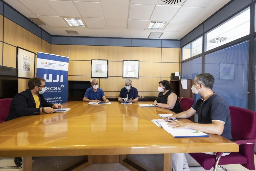 La rectora de la Universitat Jaume I, Eva Alcón, i el president de Facsa, Enrique Gimeno, han signat la renovació per tres anys del conveni per a continuar les activitats de la Càtedra Facsa d'Innovació en el Cicle Integral de l'Aigua.