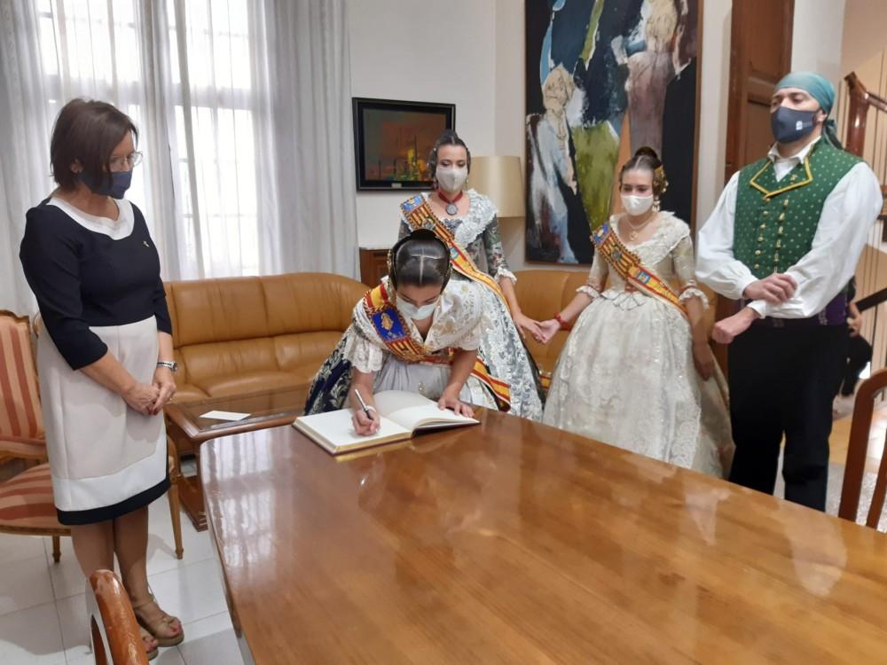 La fallera major infantil ha visitat primer l'Ajuntament, on ha estat rebuda per l'alcaldessa, i ha firmat en el Llibre d'Honor. Posteriorment, ha visitat les falles guanyadores 2021, la Falla Mercat Vell i la Falla El Caduf.