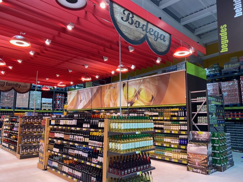 La oferta y la decoración de Family Cash también es original; por una parte, recuerda a los centros de venta al por mayor en algunos productos de alimentación perecederos y no perecederos, donde las ofertas forman parte de su identidad como tienda al público; ofrecer una imagen de confianza, resplandeciente y avanzada en sus puestos de pescadería y carnicería, con una atención personal al público. Para transformarse con una organización moderna y más vanguardista en las secciones de moda o electrodomésticos.