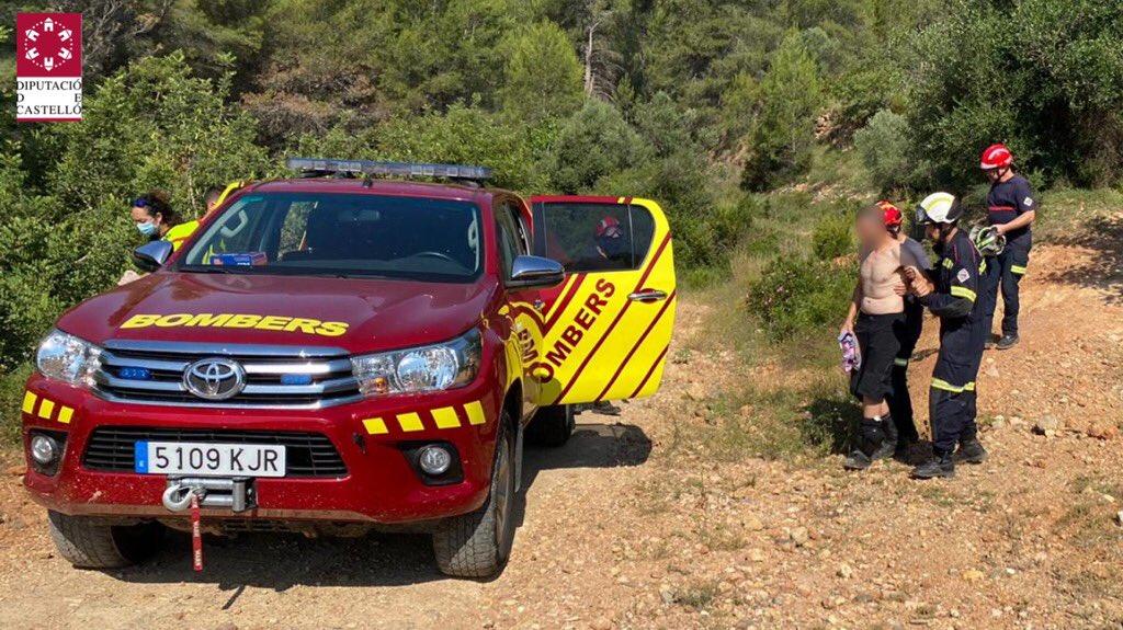 Los bomberos de los parques de la Plana Baixa y Espadà Millars han rescatado este domingo por la mañana a un ciclista que se había caído en una senda forestal en la localidad de Fanzara.