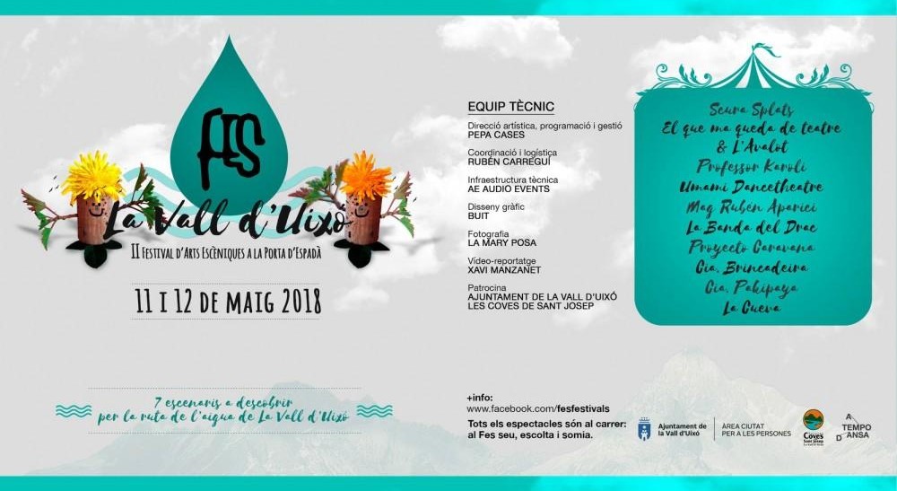 “Con este festival, la Vall d’Uixó se convertirá en un gran escenario donde poder disfrutar de multitud de espectáculos y recorrer la ciudad desde un punto de vista diferente”, ha afirmado el edil. Asimismo, ha hecho hincapié en que el Festival d’Arts Escèniques al Carrer de la Serra Espadà, que por segundo año consecutivo se celebra en la Vall d’Uixó, propone una oferta de ocio cultural y alternativo tanto para los valleros y valleras como para la gente de fuera que nos visite”.
