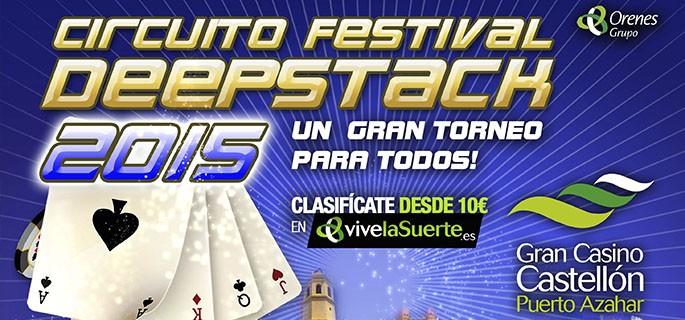 El Festival DeepStack de la etapa de julio en el Gran Casino Castellón tendrá 85.000 puntos de stack inicial y 1 día de entrada, dando inicio el viernes 3 de julio a las 18.00h, mientras que el día 2 será el sábado 4 a las 16.10h., y la final el domingo 5 a la misma hora. Al Evento Principal se le sumarán los 10.000 del buy in plus, y los 5.000 si el jugador está presente en la primera mano del torneo, total 100.000 puntos. Una gran cantidad de puntos para gozar del torneo.